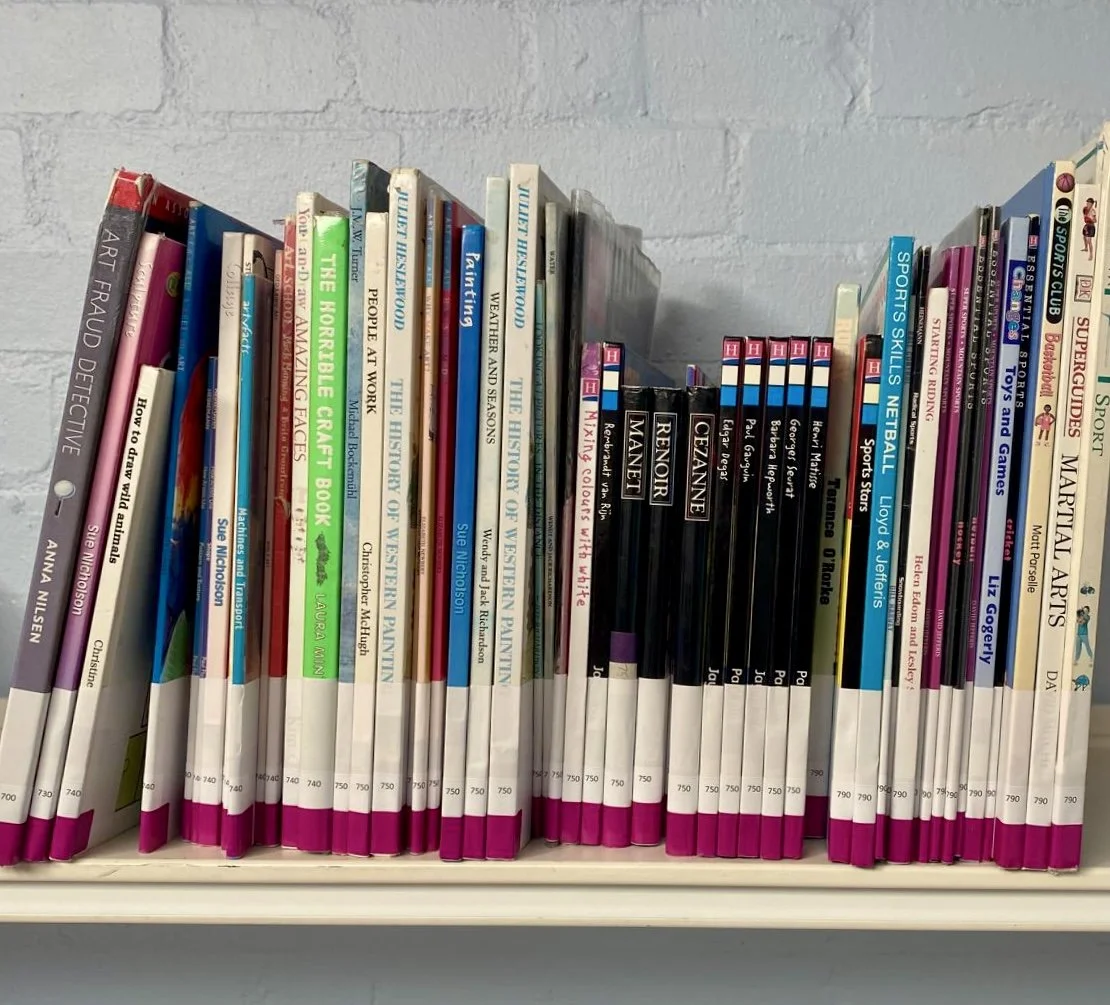 The Dewey Decimal System serves as the backbone of most libraries. It is a recognized system for labeling and categorizing, dividing books into 10 knowledge categories numbered from 000 to 999. In addition, colour coding each category will add a visual prompt to help finding books easier. It will also assist in re-homing returned books and maintaining an organized system. Having the colours and categories listed on a wall display will help students find the books they are looking for.